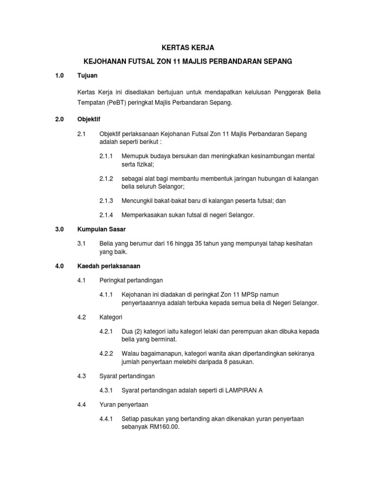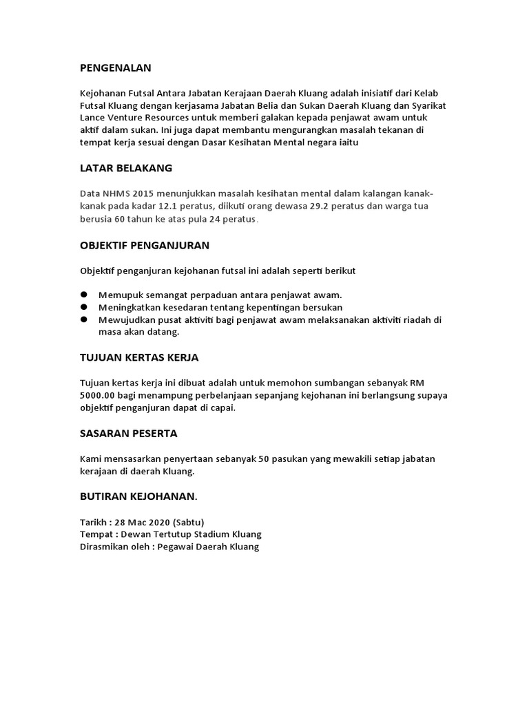 Kertas Kerja Kejohanan Futsal Antra Jabatan Daerah Kluang Pdf